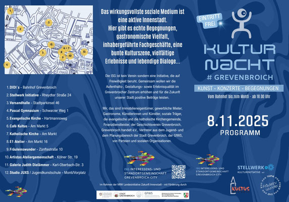 Mehr Info über die Kulturnacht bei der ISG Grevenbroich unter diesem link. (externe Seite)